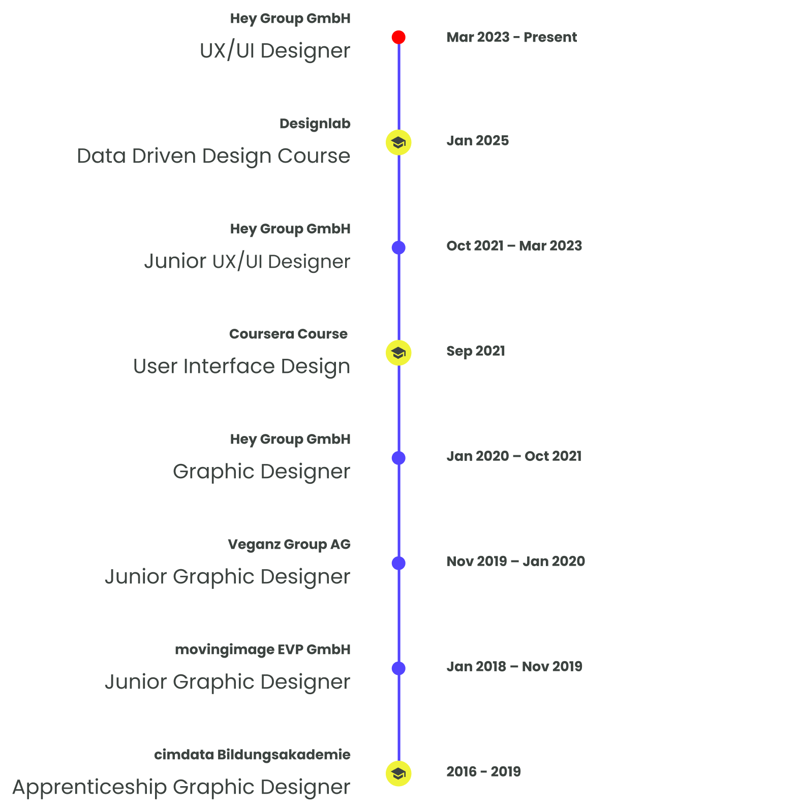 I’m curious, detail-oriented and passionate about shaping meaningful interactions between humans and technology. As a designer, I love turning complex problems into clear, engaging solutions. My work spans prototypes, wireframes and design systems and I thrive on conducting user research, usability testing and competitor analysis to uncover insights that guide data-informed decisions.