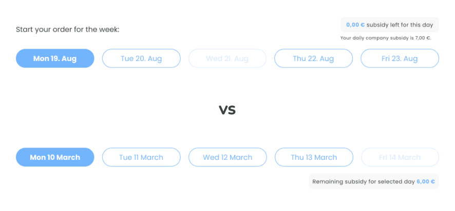 Subsidy display: tested different formats → kept a simple daily budget bar so users see instantly what’s covered.