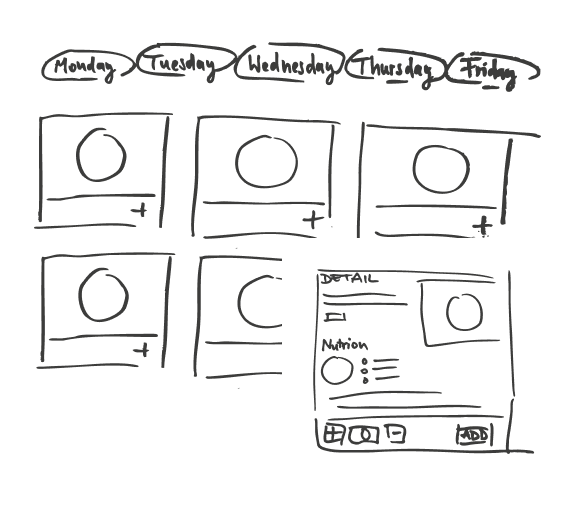Menu display: compared list and calendar layouts → selected a weekly calendar with daily dish tiles for better clarity.