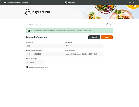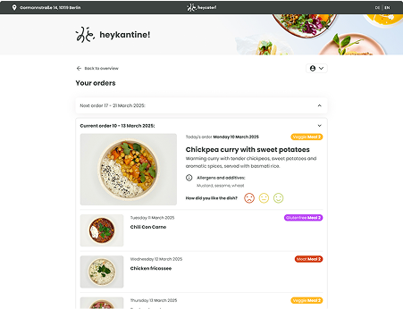 heykantine! is a digital lunch platform for companies without their own canteen. Employees can easily