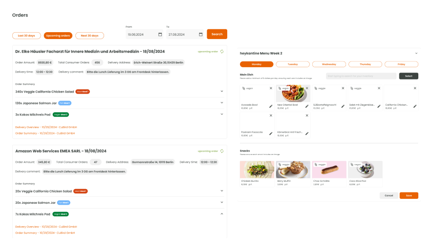 Caterer dashboard: built a clear portal → track daily orders easily and create tailored offers for upcoming weeks.